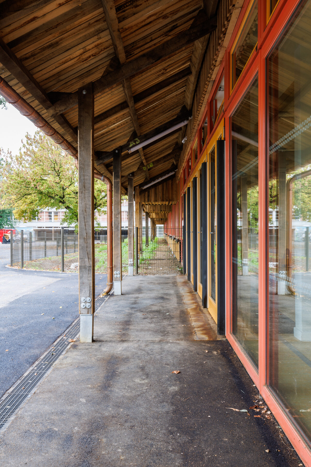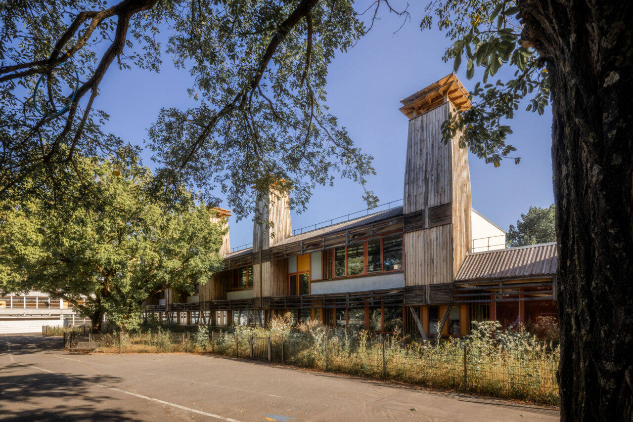 Nous avions également envisagé une surélévation portée par une structure ajoutée mais après discussion avec nos collègues de la maîtrise d’usage, nous avons décidé que le programme supplémentaire souhaité (quelques sanitaires et une salle RASED) ne justifiait pas les moyens (financiers, humains, matériels, quantité de matière...) et l'impact sur l'environnement que cela aurait supposé.