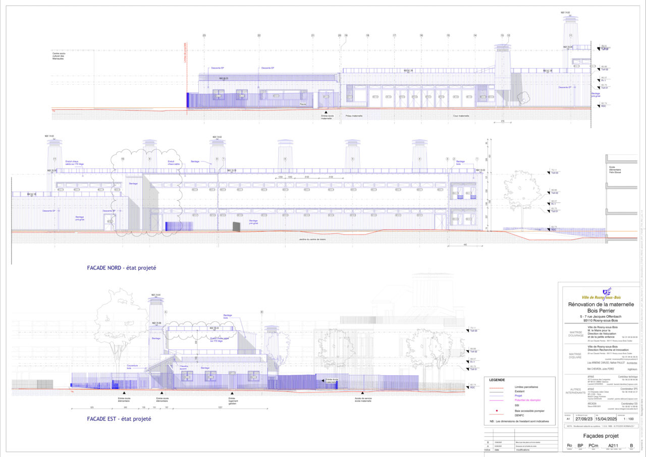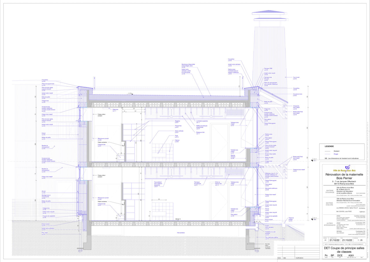 avec qui Ville de Rosny-Sous-Bois : la Direction de l’Éducation, la Direction des Bâtiments, la Direction de la Commande Publique, la Direction du Foncier, Direction des Espaces Publics (Service Nature en Ville et le service Voirie) | Bureau de contrôle : APAVE (Laurent Dandres) | Gestion des déchets : Tricyle | Voirie et réseaux divers : SNTPP | Fondations : JDH Construction | Charpente, enveloppe : Herminette | Menuiseries extérieures : Menuiseries David & Fils | Menuiseries intérieures : Bossal Rénovation | Revêtements sols, murs : ADLVO | Peinture : H2batiment | Ventilation, chauffage, plomberie : Lumage | Électricité : Portelec | Ascensoriste : NSA | Poêle de masse : Thermasse | Bois en circuit court : Bergerie dde Villarceaux.