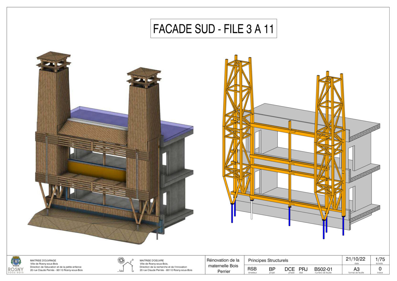qui Équipe d’Architecture régénérative, Direction Recherche et Innovation, Ville de Rosny-Sous-Bois | Direction : Emmanuel Pezrès, Charlotte Picard | Architecte cheffe de projet : Lisa Armone Caruso | Ingénieur bois : Yannig Robert, Mel Chevron | Ingénieur fluides : Giampiero Ripanti, Jules Porée | Ingénieure recherche : Chloé Zordan | Suivi de chantier : Mel Chevron. Avec la participation de Vincent Raeppel, Nathan Paulot, Adrien Esteve, Marc Mevouna.