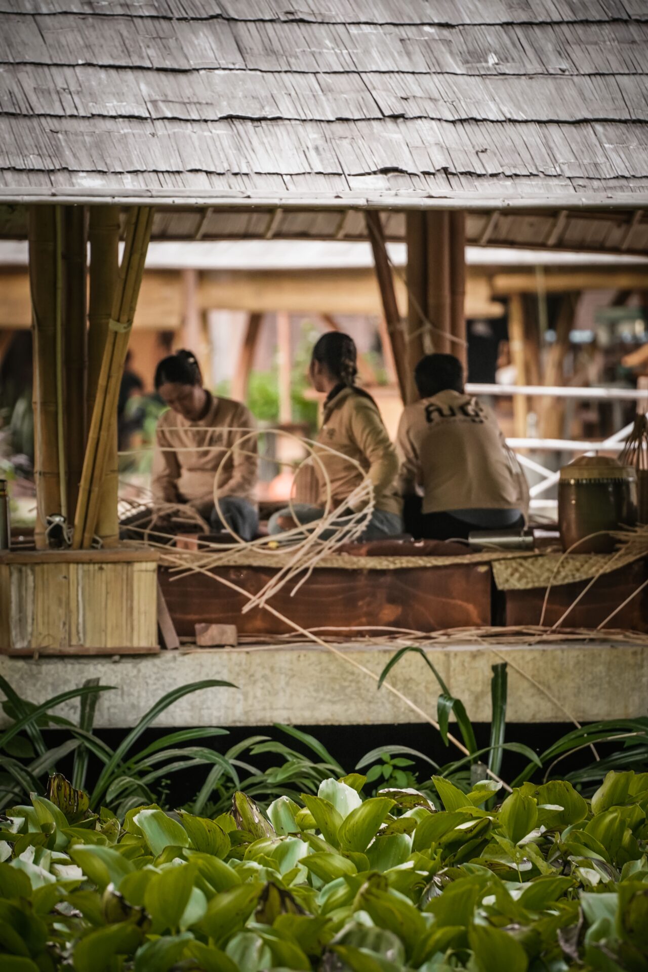 L’architecture du lieu traduit directement les objectifs et valeurs de Satcha : elle en est un outil concret. Les ateliers en bambou, entièrement ouverts, valorisent la qualité du travail des artisan·e·s tout en affirmant que la culture cambodgienne est vivante. Leur ouverture symbolise celle que nous avons souhaité offrir aux visiteurs comme aux équipes.
