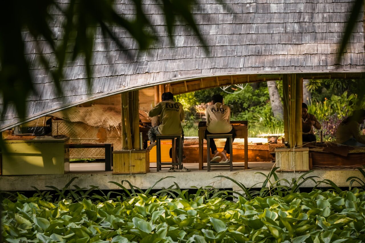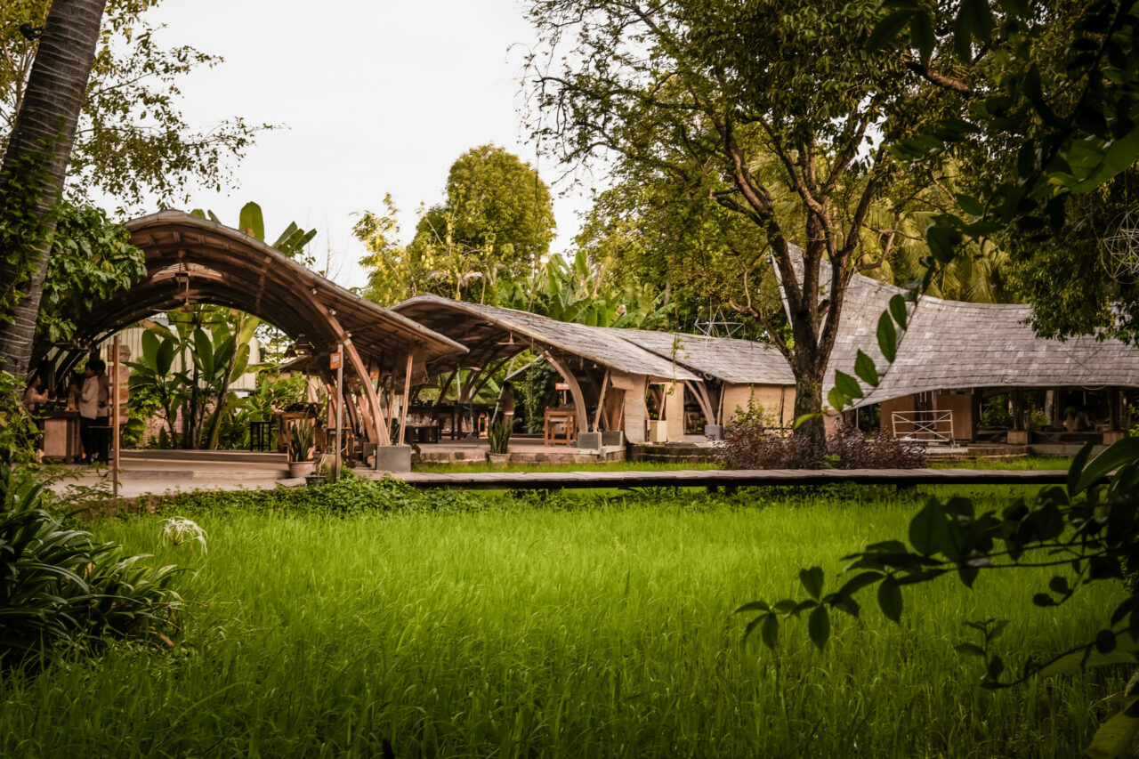L’aménagement du lieu est à l’image de ce fort engagement social. De grands ateliers en bambou sur pilotis flottent au-dessus de la rizière. Entièrement ouverts sur l’extérieur, ils favorisent aussi bien le lien et la connexion physique que la porosité des savoirs.