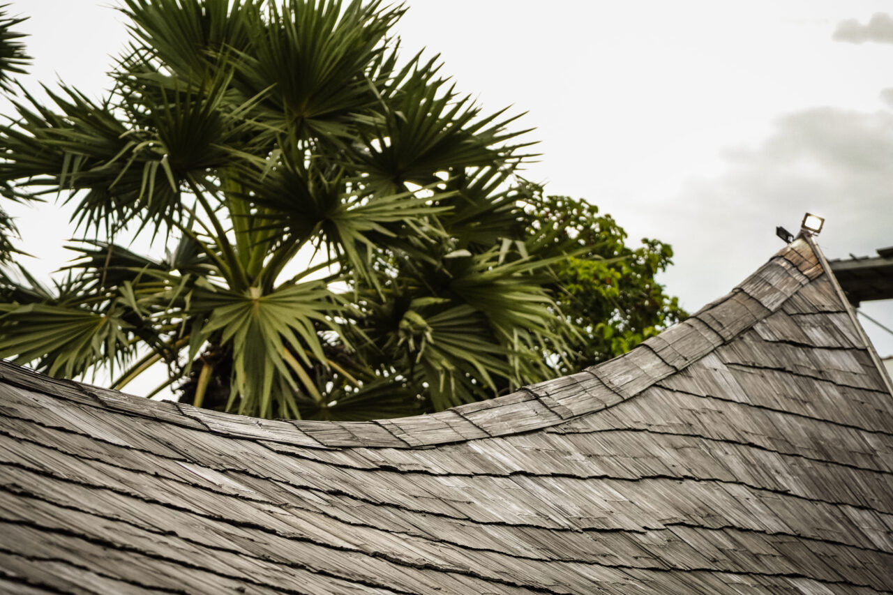 Les constructions se sont adaptées au climat, avec des toits en bambou à large débord pour empêcher les pluies de pénétrer, des structures flexibles en lamelles de bambou assemblées qui se balancent avec la tempête sans se briser, et des dalles de béton sur pilotis, élevées à 60 cm du sol.