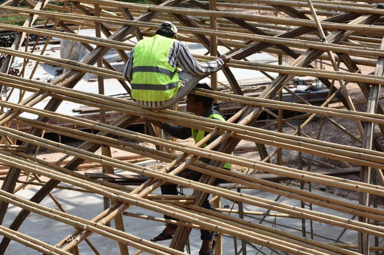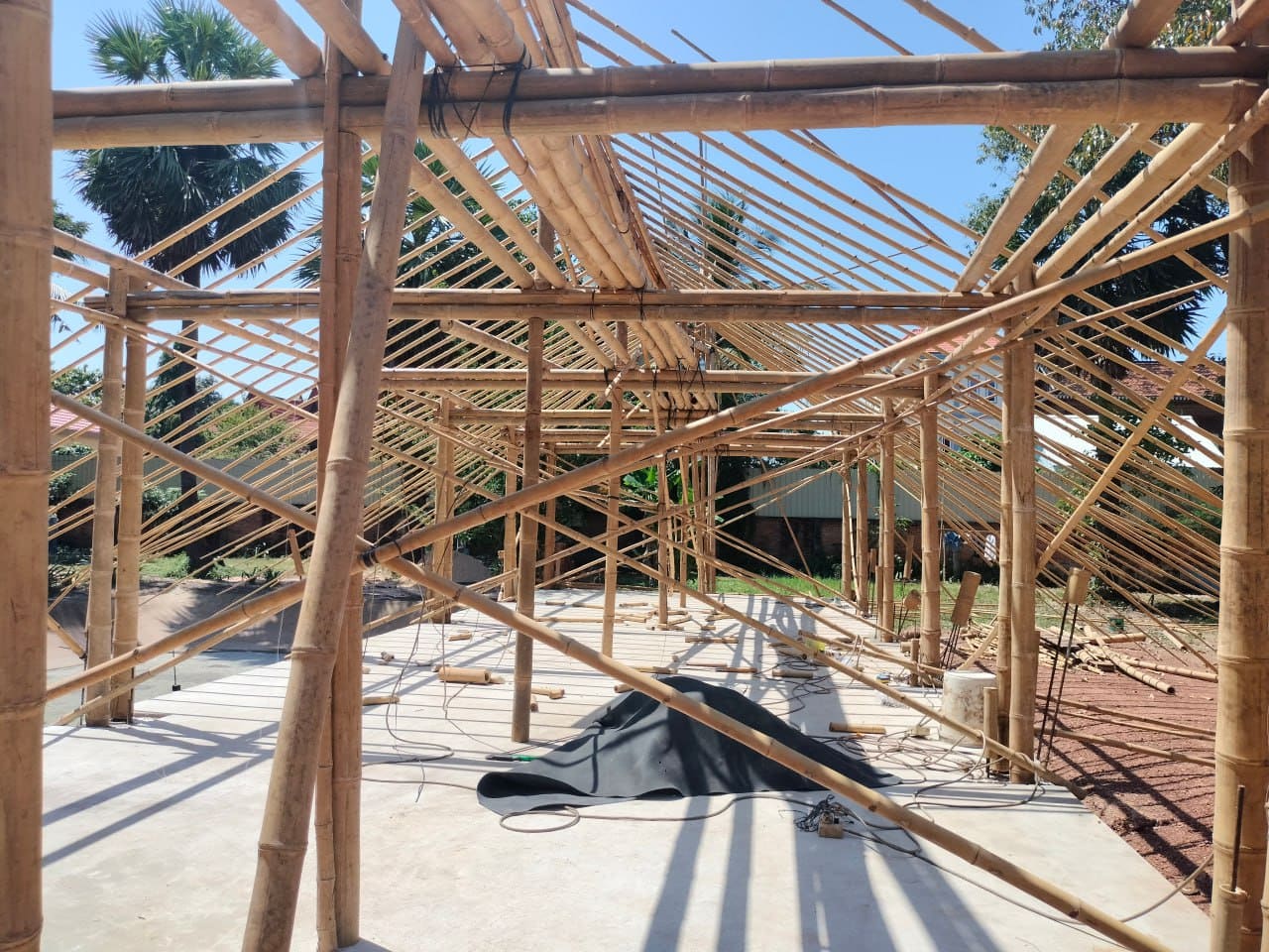 Kiri Bamboo s’est occupé de l’approvisionnement du bambou nécessaire pour la construction. Les trois types de bambou utilisés proviennent de la province de Kampong Cham, à une centaine de kilomètres au nord-est de Phnom Penh, le long du Mékong.
