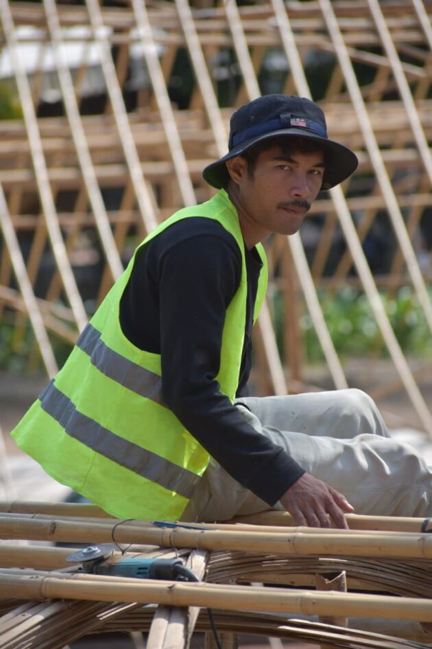 Au Cambodge, le bambou a été peu à peu délaissé, parce qu’il était considéré, comme vous le soulignez, comme le matériau des huttes précaires dans les rizières ou au bord des fleuves. En construisant des structures modernes, solides et responsables, nous voulions redonner au bambou ses lettres de noblesse et montrer qu’il peut être un matériau d’avenir, non seulement pour le Cambodge, mais pour la construction à l’échelle mondiale. Comme mentionné précédemment, il incarne pour nous l’alliance entre matériaux locaux, savoir-faire traditionnels et modernité, à l’image de l’artisanat que nous produisons dans nos ateliers.