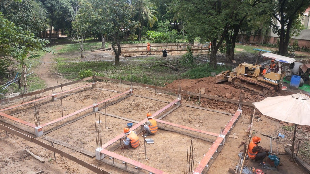 Le premier obstacle a été l’eau. En démarrant la construction en pleine saison des pluies, il a fallu d’abord mettre en place un système de gestion de l’eau, sans quoi non seulement il aurait été impossible d’accueillir des visiteurs, mais aussi de construire tout simplement !