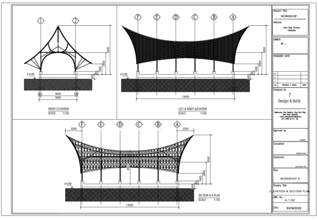 La forme de l’atelier central de Satcha reprend d’ailleurs une version très stylisée des toits des maisons traditionnelles cambodgiennes et des pagodes, en particulier le « Kbach » de toit. Les autres ateliers sont plus sobres, mais l’ouverture zénithale s’inspire de la feuille du banian, l’arbre de Bouddha.